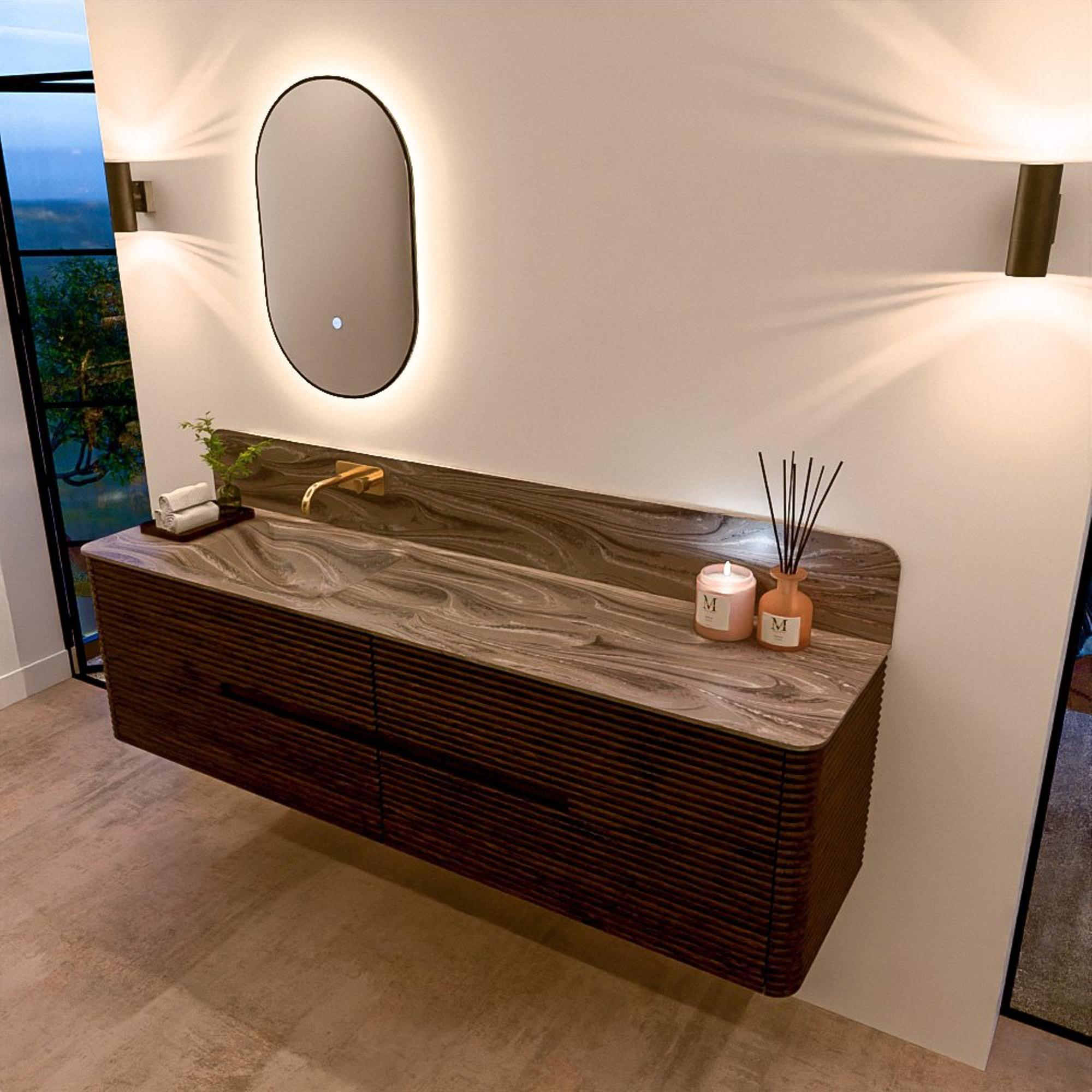 Le meuble de salle de bain CIRO-DLUX a été développé pour ceux qui choisissent un design moderne, des matériaux naturels et une fonctionnalité de haute qualité. Avec des dimensions allant de 70 cm à 190 cm, la gamme CIRO-DLUX s’intègre facilement aussi bien dans les salles de bain compactes que dans les grands espaces de design. Chaque meuble est une combinaison équilibrée d’esthétique, de savoir-faire et de qualité durable.