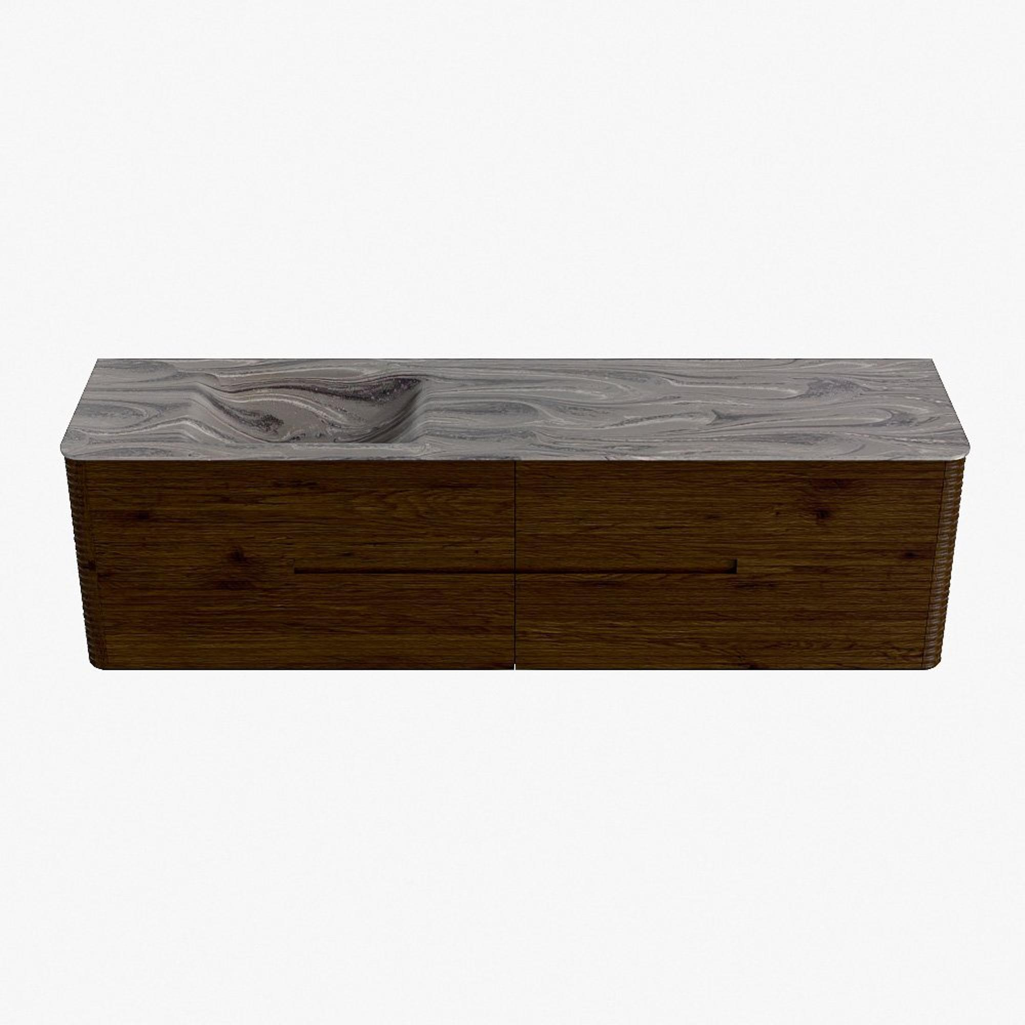Mondiaz CIRO-DLUX Ensemble de meubles de salle de bains - 180x45x50cm - vasque solid surface Sombra - 1 bassin à gauche - sans trous de robinetterie - 4 tiroirs - Noyer
