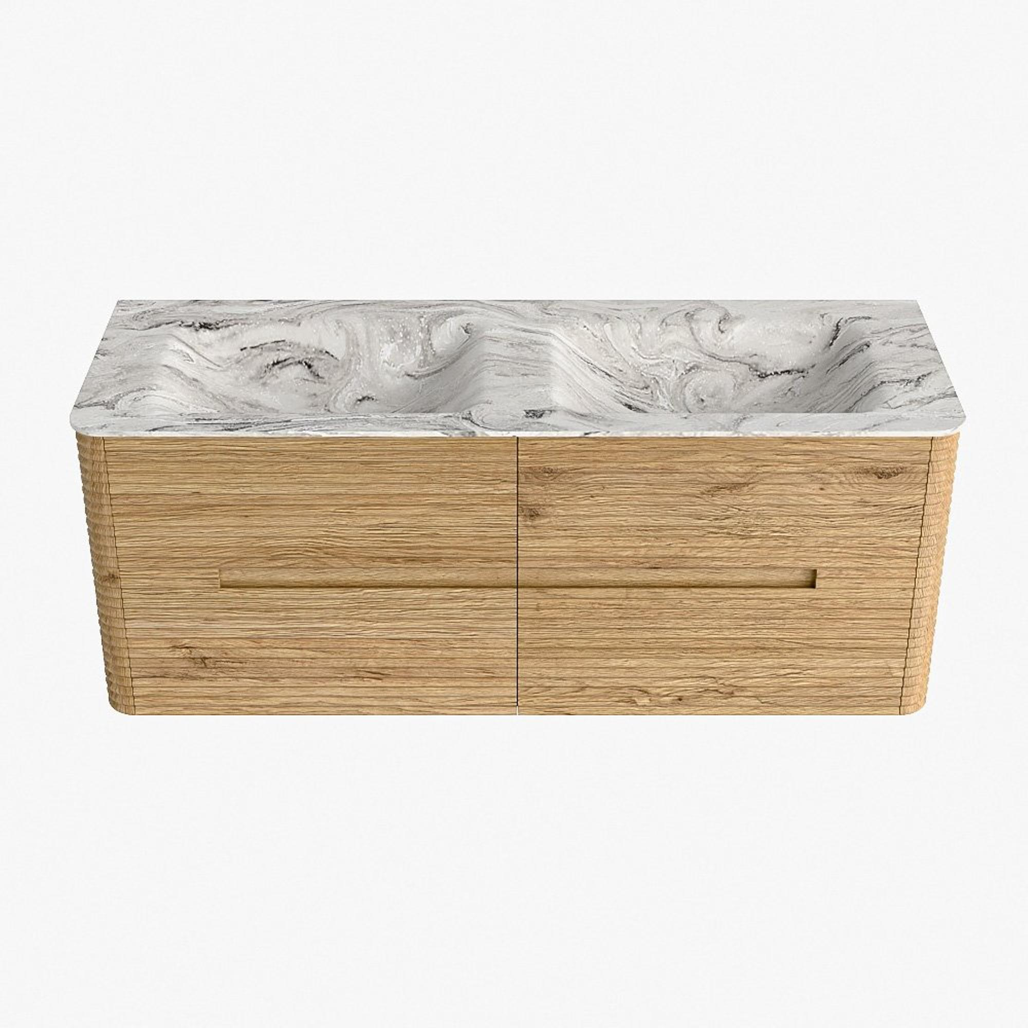 Mondiaz CIRO-DLUX Ensemble de meubles de salle de bains - 130x45x50cm - vasque en solid surface Glace - 2 bassins Double - 2 trous de robinet - 4 tiroirs - Chêne