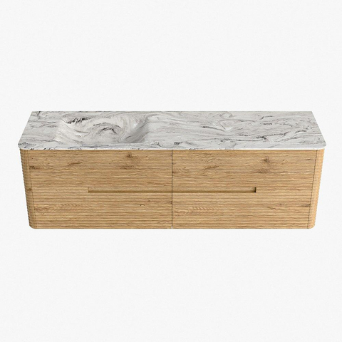 Mondiaz CIRO-DLUX Meuble de salle de bains - 160x45x50cm - Plan-vasque en solid surface Glace - 1 vasque à gauche - 1 trou de robinet - 4 tiroirs - Chêne
