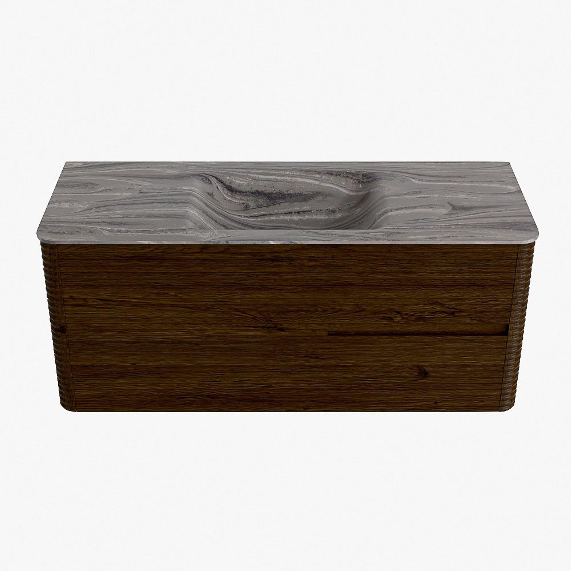 Mondiaz CIRO-DLUX Meuble de salle de bains - 120x45x50cm - Plan vasque solid surface Sombra - 1 vasque au milieu - 1 trou de robinet - 2 tiroirs - Noyer