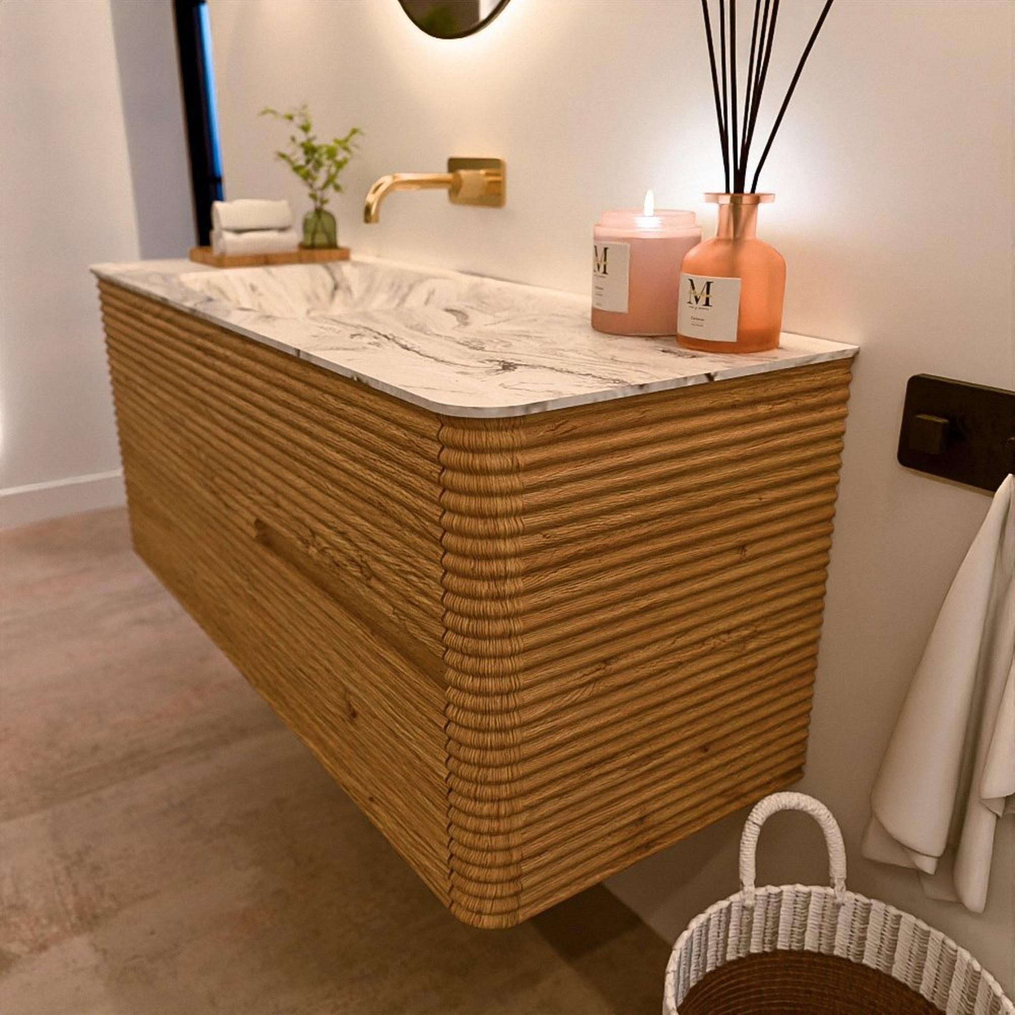Le meuble de salle de bain CIRO-DLUX a été développé pour ceux qui choisissent un design moderne, des matériaux naturels et une fonctionnalité de haute qualité. Avec des dimensions allant de 70 cm à 190 cm, la gamme CIRO-DLUX s’intègre facilement aussi bien dans les salles de bain compactes que dans les grands espaces de design. Chaque meuble est une combinaison équilibrée d’esthétique, de savoir-faire et de qualité durable.