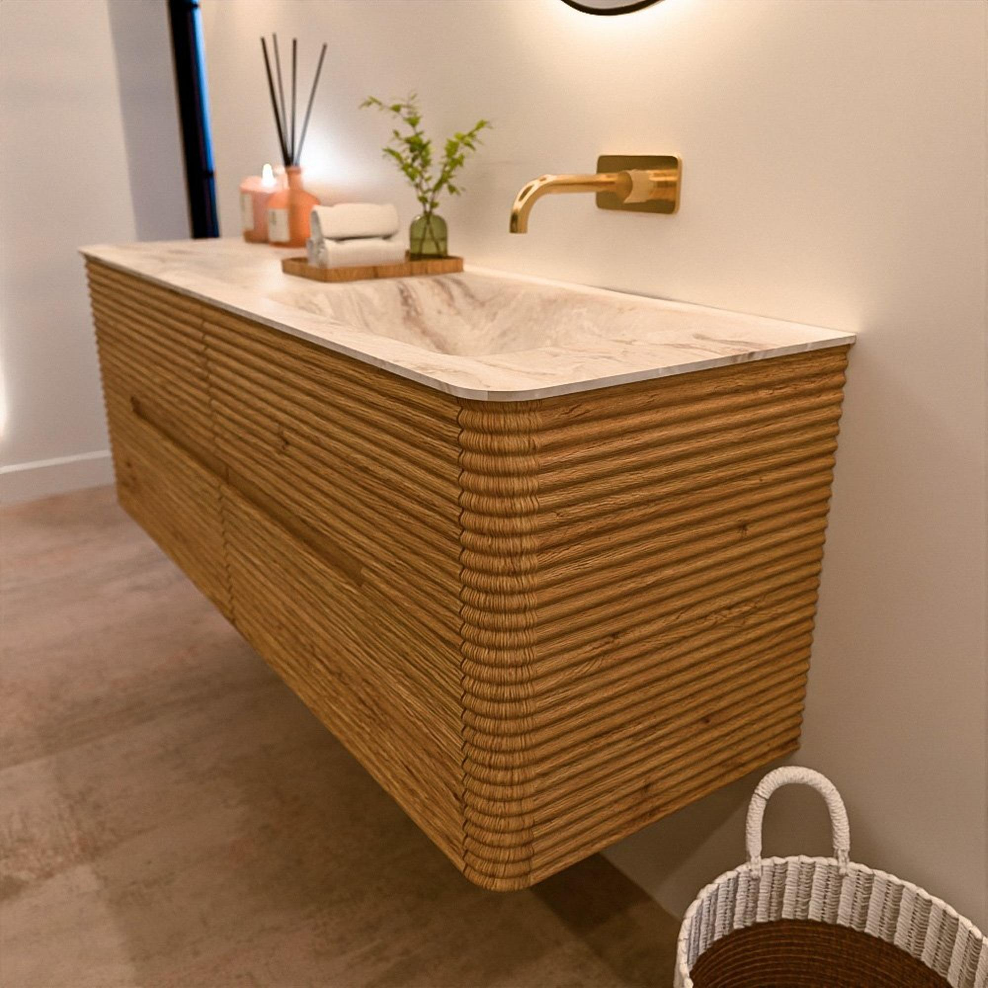 Le meuble de salle de bain CIRO-DLUX a été développé pour ceux qui choisissent un design moderne, des matériaux naturels et une fonctionnalité de haute qualité. Avec des dimensions allant de 70 cm à 190 cm, la gamme CIRO-DLUX s’intègre facilement aussi bien dans les salles de bain compactes que dans les grands espaces de design. Chaque meuble est une combinaison équilibrée d’esthétique, de savoir-faire et de qualité durable.