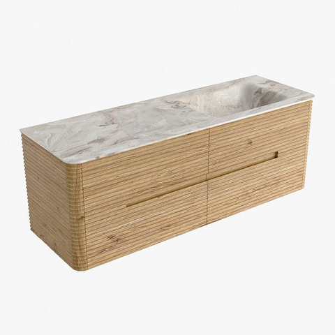 Mondiaz CIRO-DLUX Meuble de salle de bains - 140x45x50cm - Plan vasque solid surface Frappe - 1 vasque à droite - sans trous de robinetterie - 4 tiroirs - Chêne