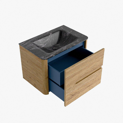Mondiaz CIRO-DLUX Meuble de salle de bains complet - 70x45x50cm - Lavabo en solid surface Lava - 1 vasque Centrale - 1 trou de robinet - 2 tiroirs - Chêne