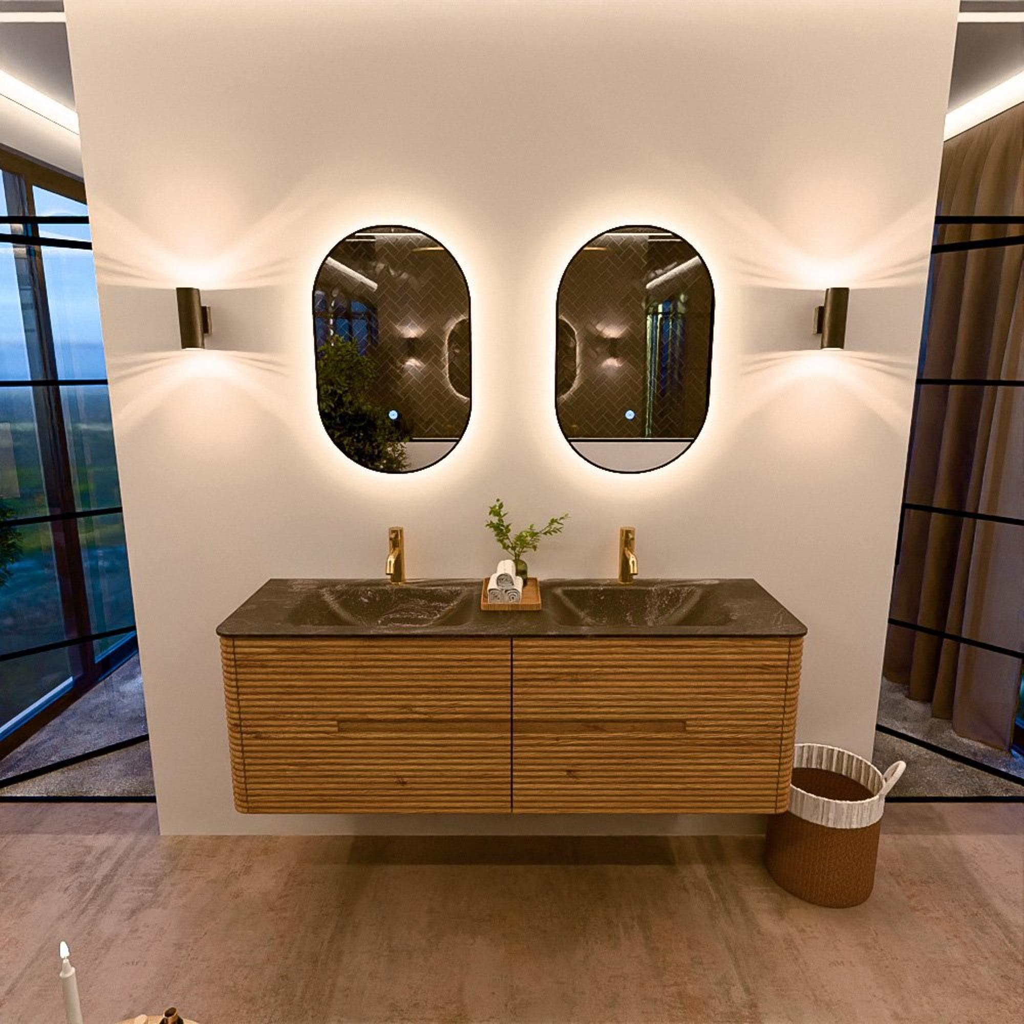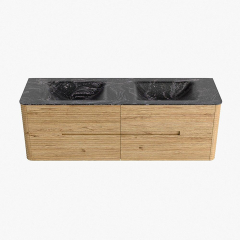Mondiaz CIRO-DLUX Meuble de salle de bains - 150x45x50cm - Vasque en solid surface Lava - 2 vasques double - 2 trous de robinet - 4 tiroirs - Chêne