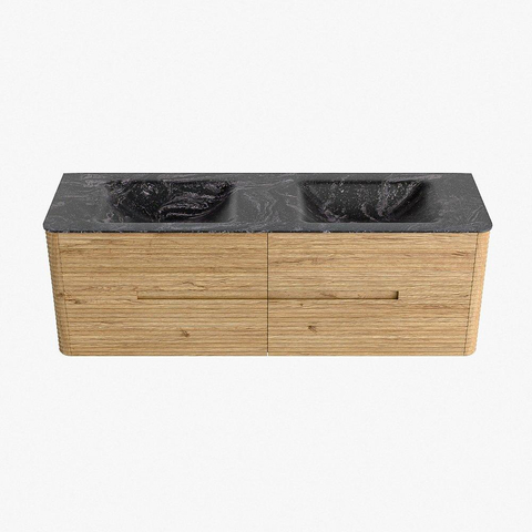 Mondiaz CIRO-DLUX Ensemble de meubles de salle de bains - 150x45x50cm - lavabo solid surface Lava - 2 vasques double - sans trous de robinet - 4 tiroirs - Chêne