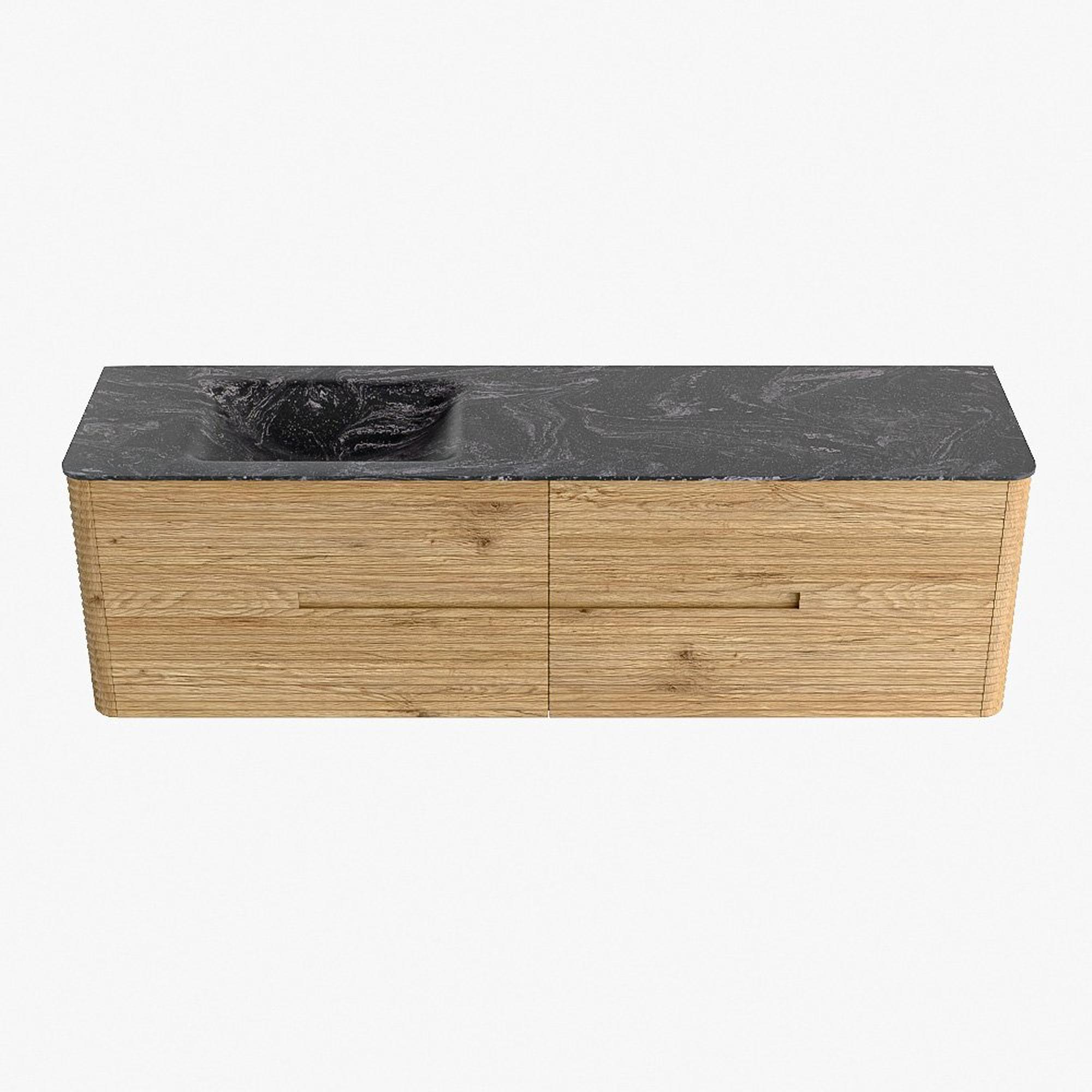 Mondiaz CIRO-DLUX Ensemble de meubles de salle de bains - 170x45x50cm - lavabo solid surface Lava - 1 vasque à gauche - sans trous de robinet - 4 tiroirs - Chêne