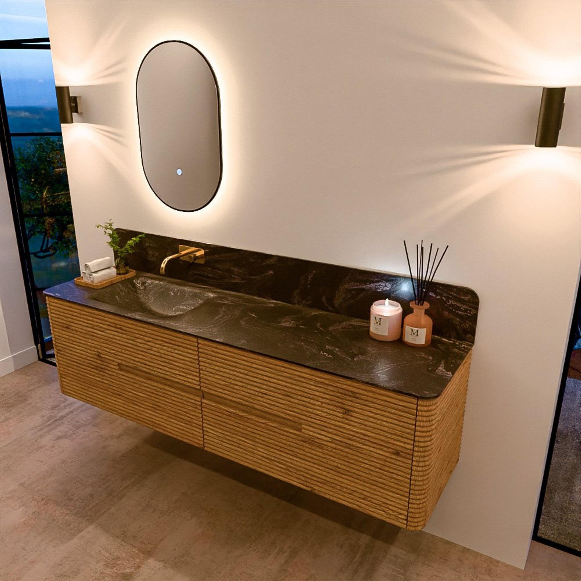 Mondiaz CIRO-DLUX Meuble de salle de bains - 180x45x50cm - lavabo en Solid surface Lava - 1 vasque à gauche - sans trous de robinetterie - 4 tiroirs - Chêne