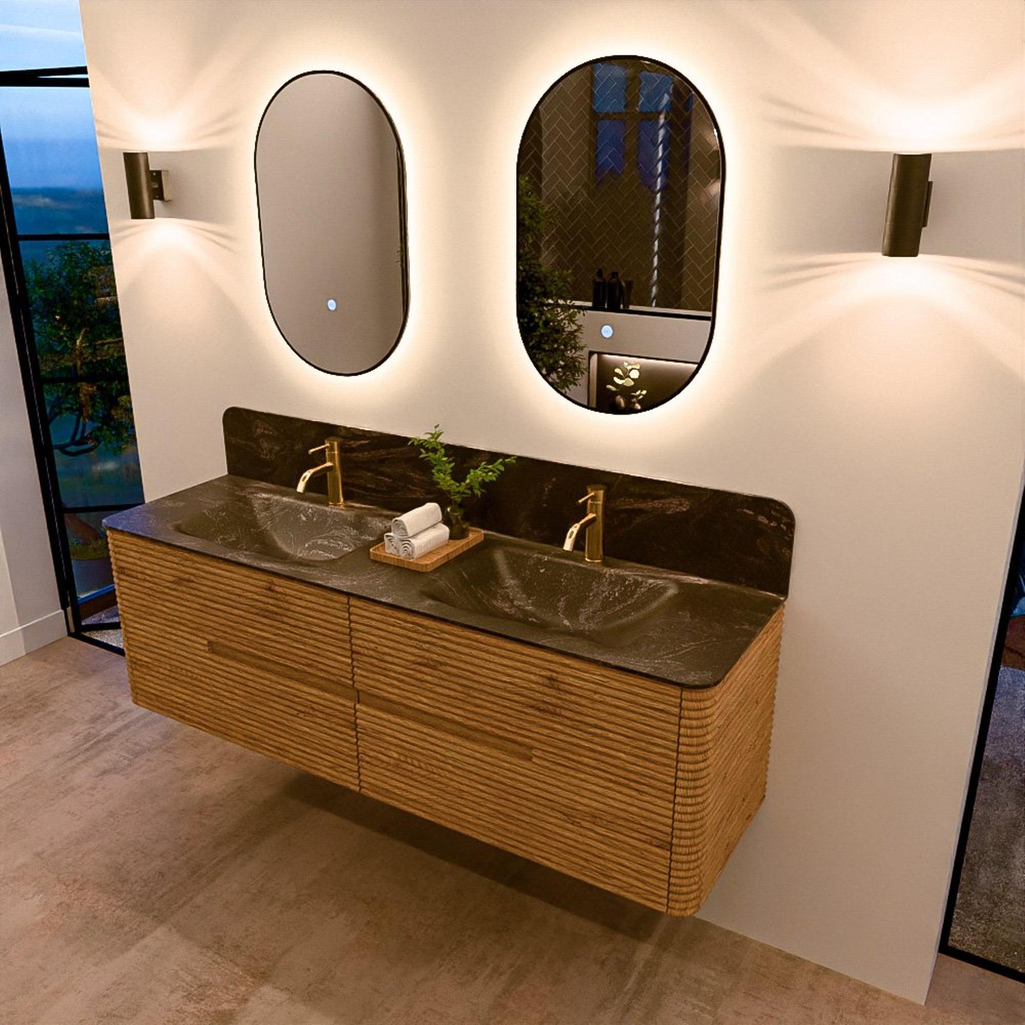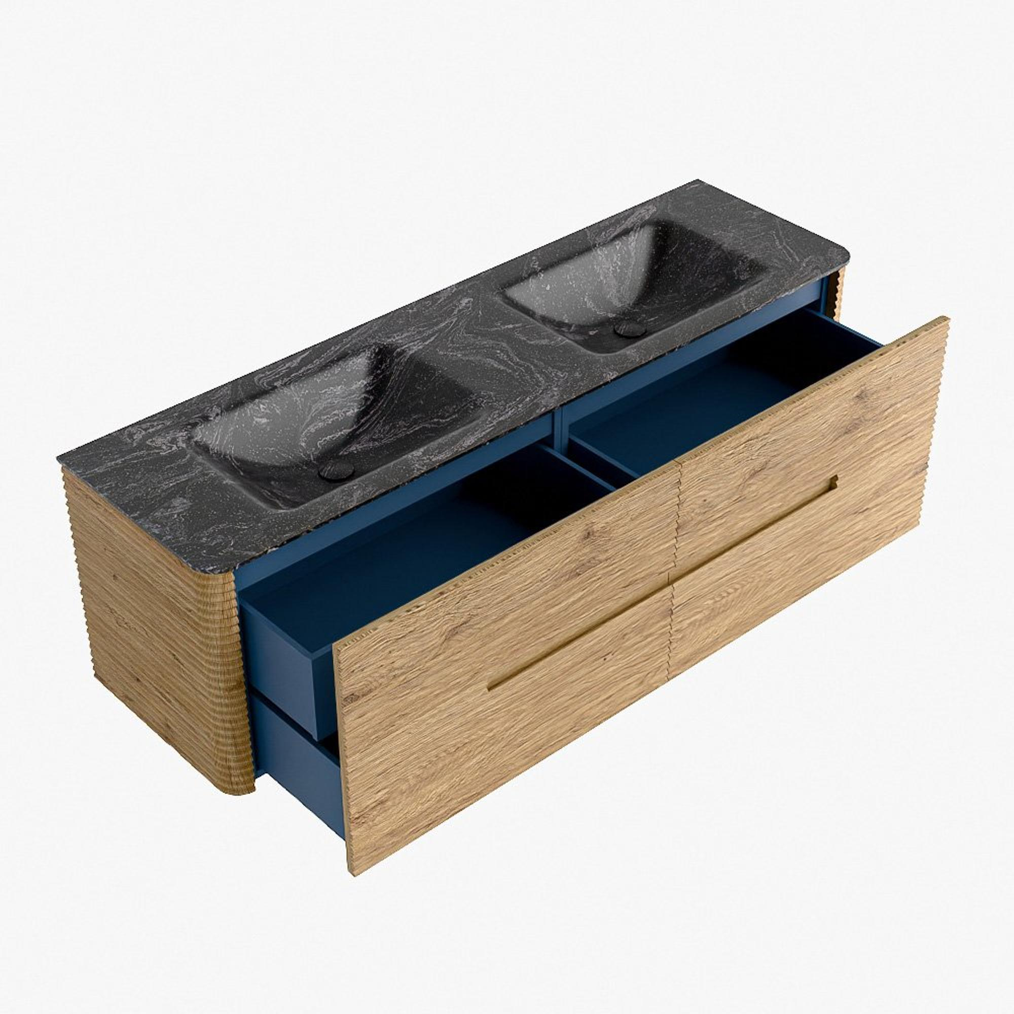 Mondiaz CIRO-DLUX Ensemble de meubles de salle de bains - 160x45x50cm - Plan vasque solid surface Lava - 2 vasques Double - 2 trous de robinet - 4 tiroirs - Chêne
