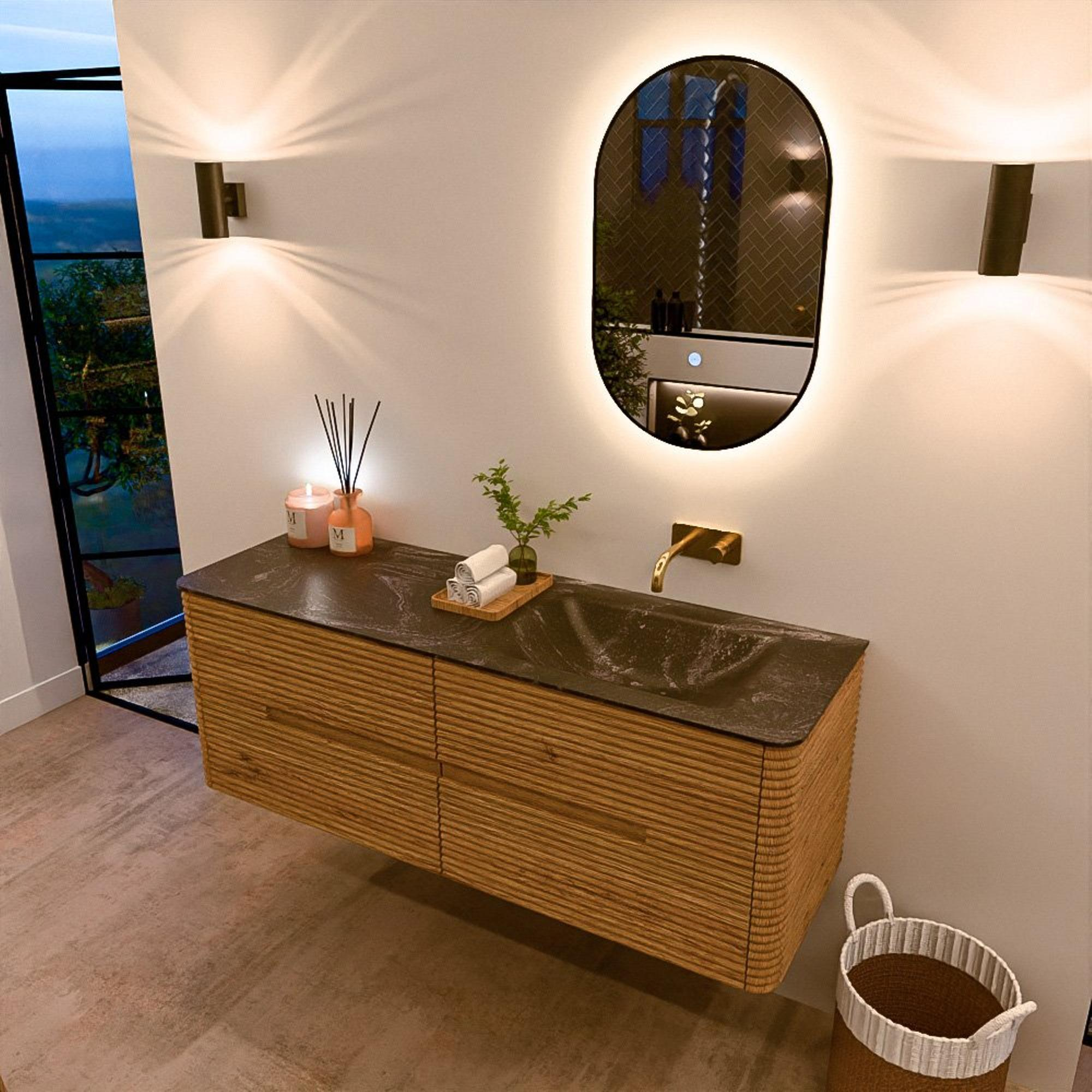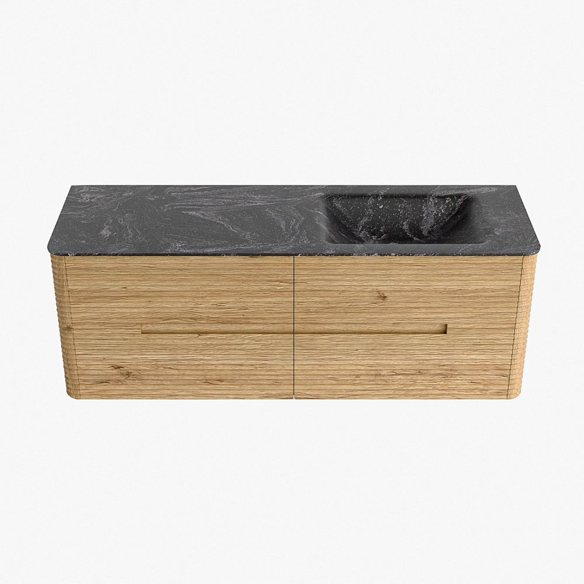Mondiaz CIRO-DLUX Meuble de salle de bains - 140x45x50cm - Plan vasque solid surface Lava - 1 lavabo à droite - sans trous de robinetterie - 4 tiroirs - Chêne