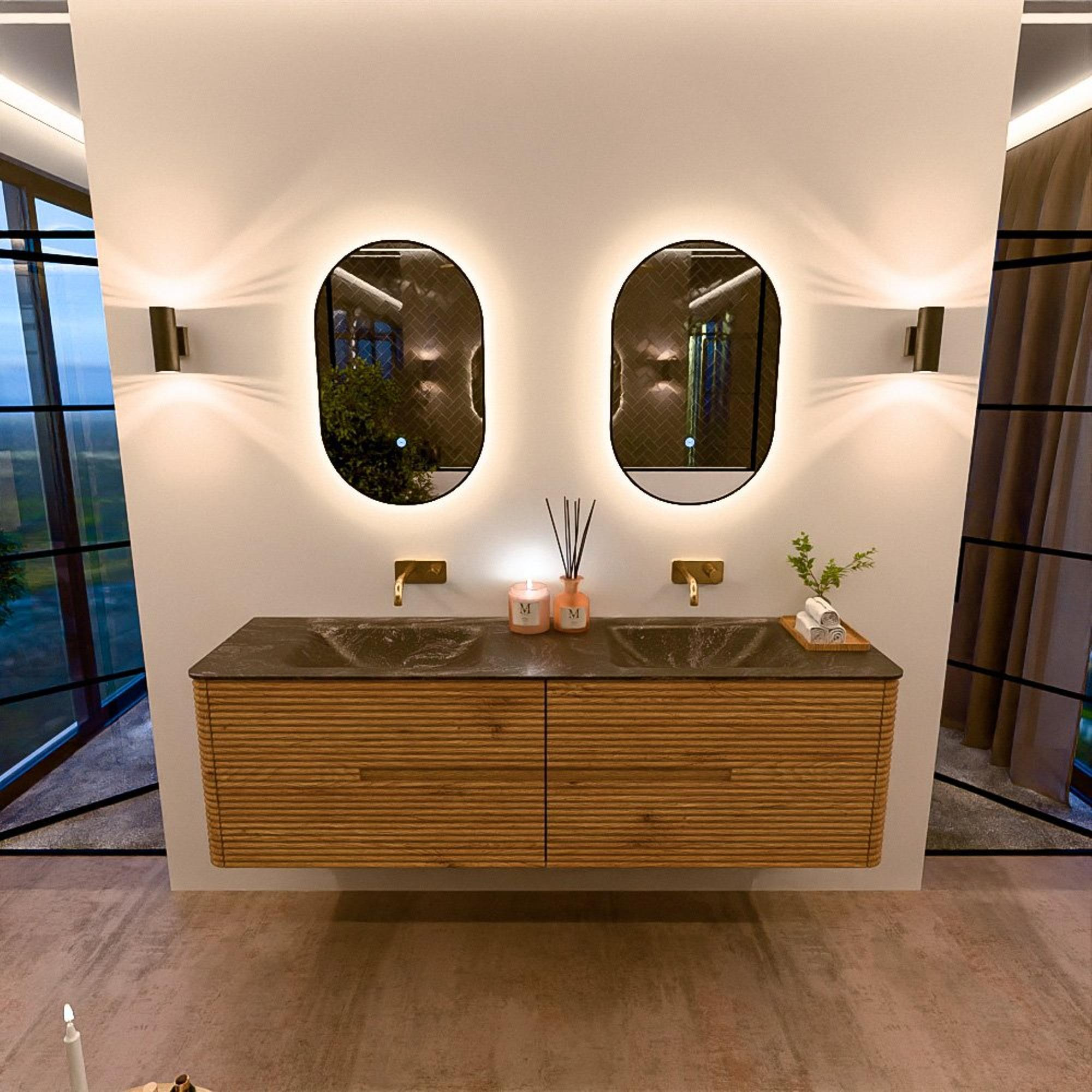 Mondiaz CIRO-DLUX Ensemble de meubles de salle de bains - 170x45x50cm - lavabo Solid surface Lava - 2 vasques Double - sans trous de robinet - 4 tiroirs - Chêne