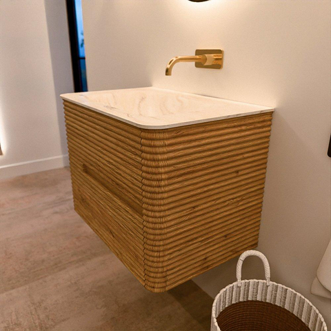 Mondiaz CIRO-DLUX Ensemble de meubles de salle de bains - 70x45x50cm - lavabo solid surface Ostra - 1 vasque au milieu - sans trous de robinetterie - 2 tiroirs - Chêne