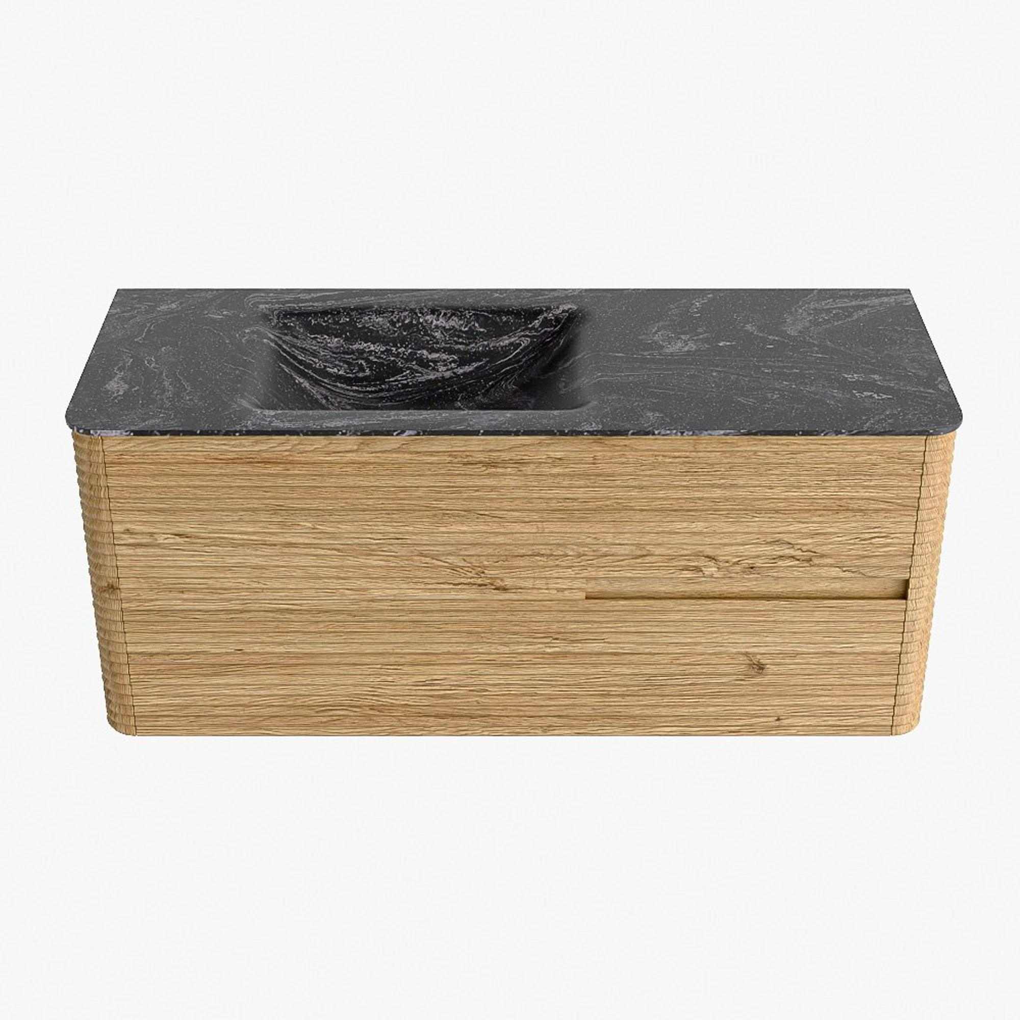 Mondiaz CIRO-DLUX Meuble de salle de bains - 120x45x50cm - lavabo solid surface Lava - 1 vasque à gauche - sans trous de robinet - 2 tiroirs - Chêne