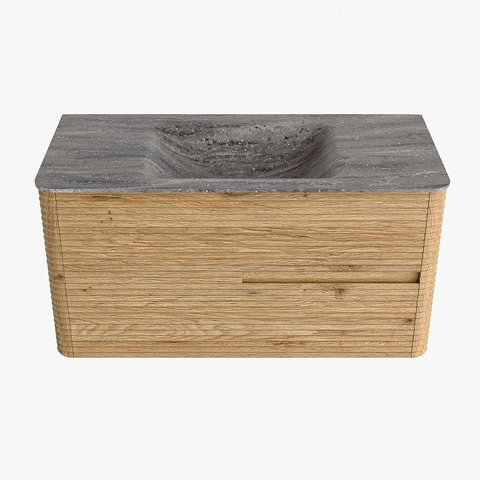 Mondiaz CIRO-DLUX Meuble de salle de bains - 100x45x50cm - Plan-vasque Solid surface Oza - 1 vasque au milieu - sans trous de robinet - 2 tiroirs - Chêne