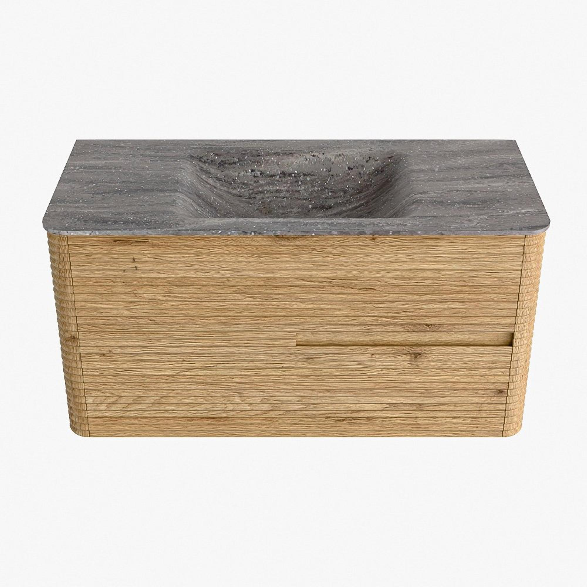 Mondiaz CIRO-DLUX Ensemble de meubles de salle de bains - 100x45x50cm - Plan vasque Solid surface Oza - 1 vasque Centrale - 1 trou de robinet - 2 tiroirs - Chêne