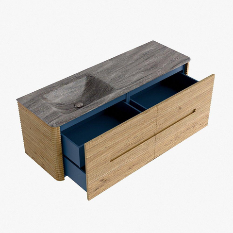 Mondiaz CIRO-DLUX Ensemble de meubles de salle de bains - 140x45x50cm - Vasque en solid surface Oza - 1 lavabo à gauche - 1 trou de robinet - 4 tiroirs - Chêne