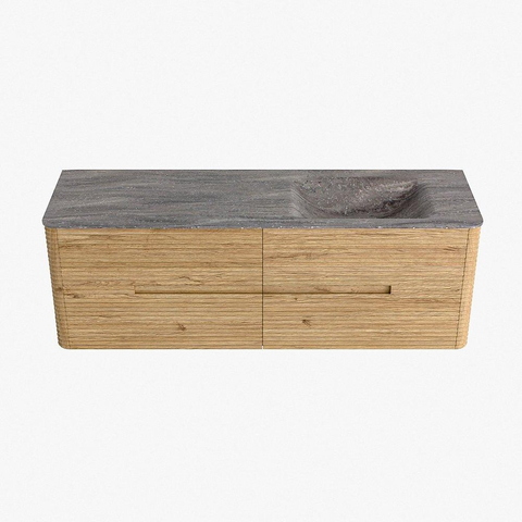 Mondiaz CIRO-DLUX Ensemble de meubles de salle de bains - 150x45x50cm - Vasque en solid surface Oza - 1 bassin à droite - 1 trou de robinet - 4 tiroirs - Chêne