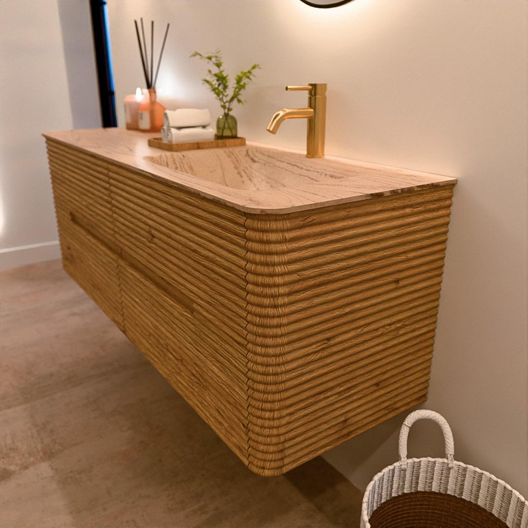 Le meuble de salle de bain CIRO-DLUX a été développé pour ceux qui choisissent un design moderne, des matériaux naturels et une fonctionnalité de haute qualité. Avec des dimensions allant de 70 cm à 190 cm, la gamme CIRO-DLUX s’intègre facilement aussi bien dans les salles de bain compactes que dans les grands espaces de design. Chaque meuble est une combinaison équilibrée d’esthétique, de savoir-faire et de qualité durable.