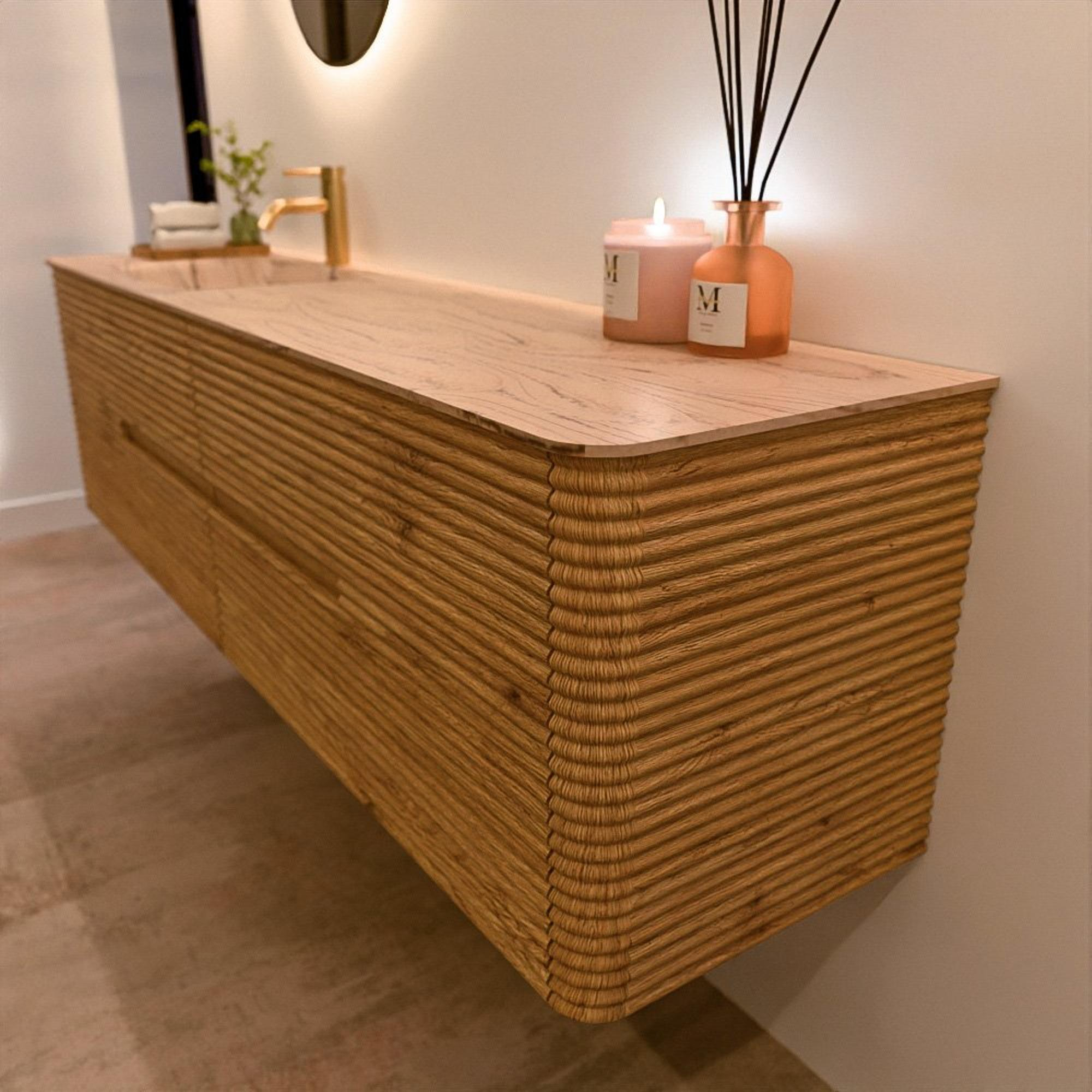 Le meuble de salle de bain CIRO-DLUX a été développé pour ceux qui choisissent un design moderne, des matériaux naturels et une fonctionnalité de haute qualité. Avec des dimensions allant de 70 cm à 190 cm, la gamme CIRO-DLUX s’intègre facilement aussi bien dans les salles de bain compactes que dans les grands espaces de design. Chaque meuble est une combinaison équilibrée d’esthétique, de savoir-faire et de qualité durable.