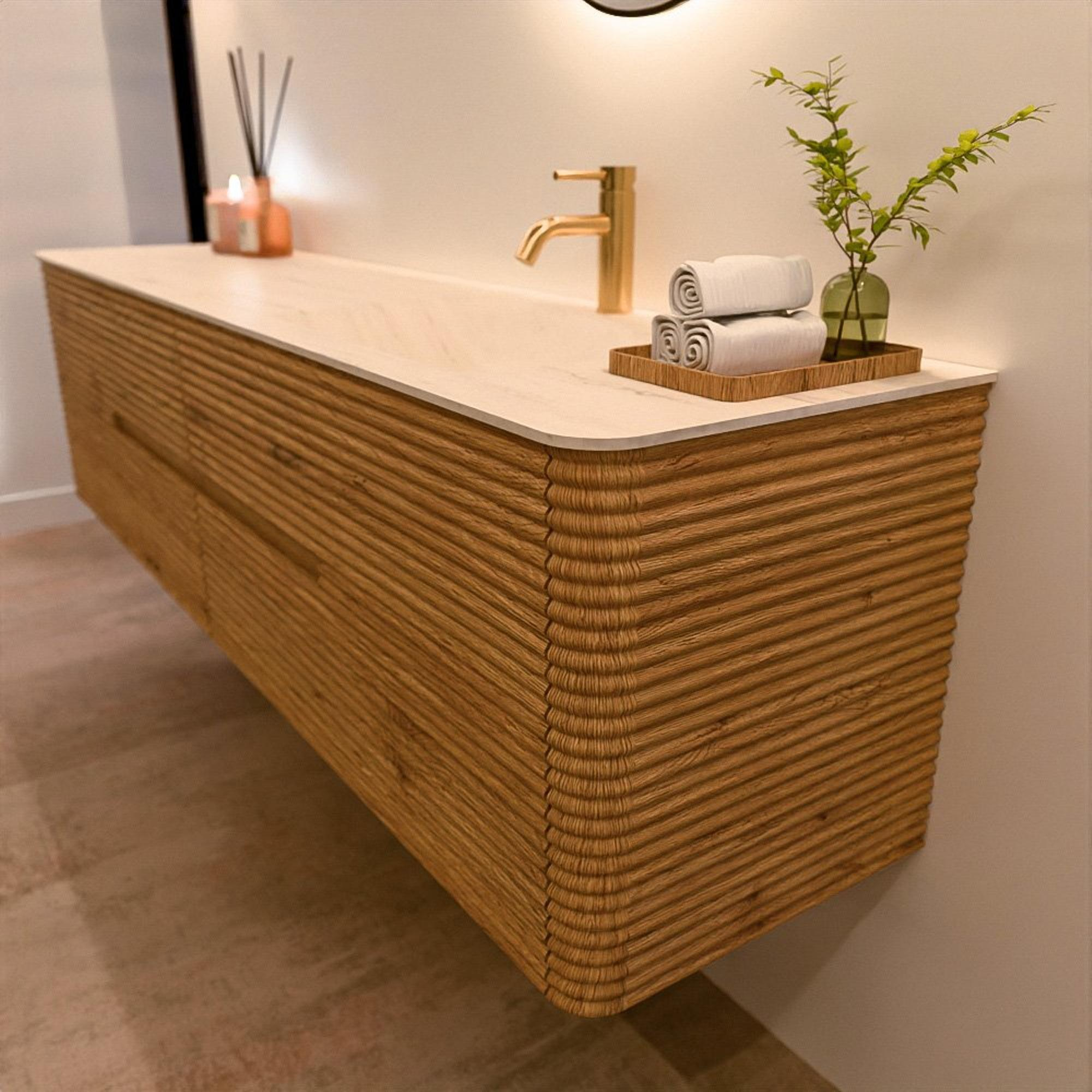 Le meuble de salle de bain CIRO-DLUX a été développé pour ceux qui choisissent un design moderne, des matériaux naturels et une fonctionnalité de haute qualité. Avec des dimensions allant de 70 cm à 190 cm, la gamme CIRO-DLUX s’intègre facilement aussi bien dans les salles de bain compactes que dans les grands espaces de design. Chaque meuble est une combinaison équilibrée d’esthétique, de savoir-faire et de qualité durable.
