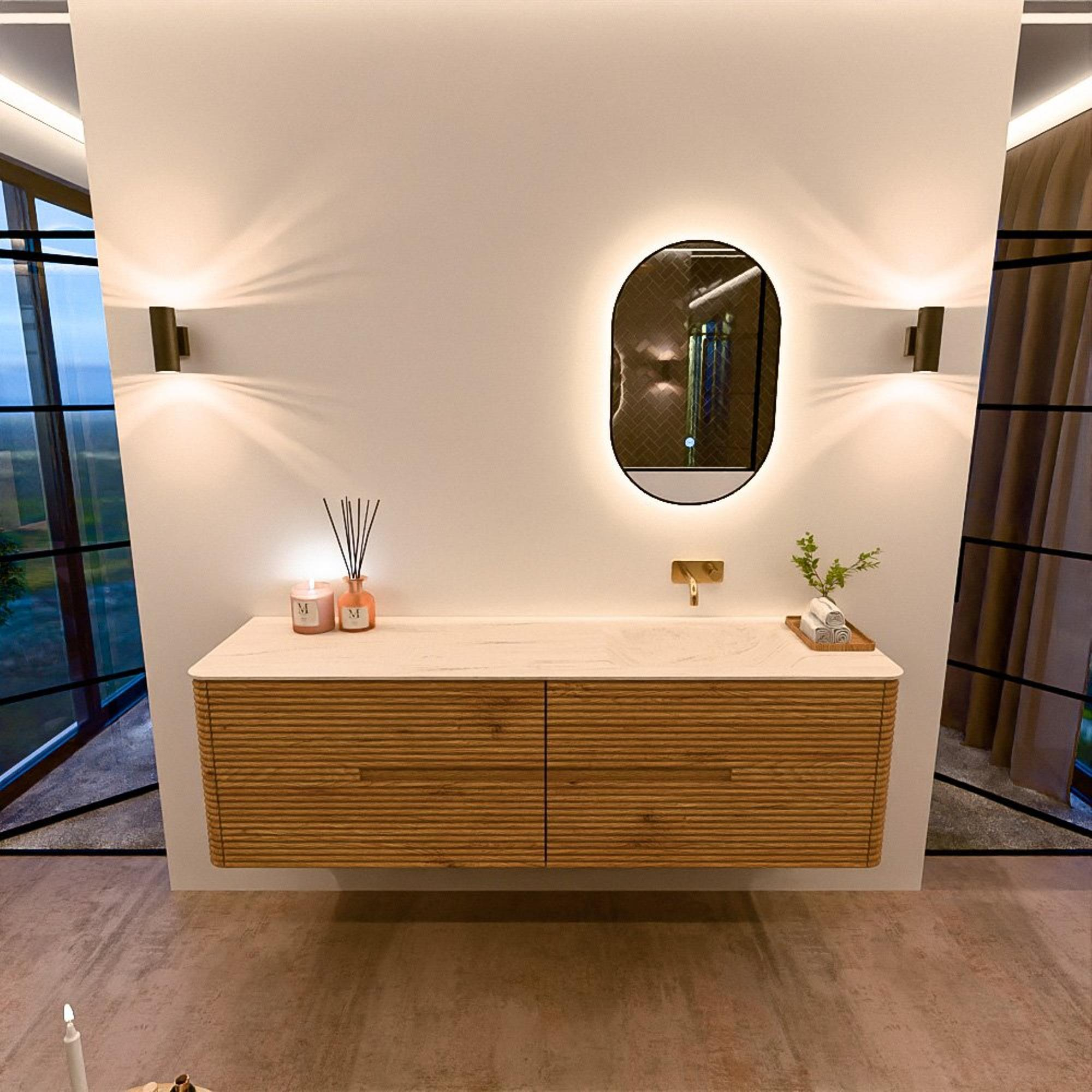 Mondiaz CIRO-DLUX Meuble de salle de bains - 170x45x50cm - Plan-vasque Solid surface Meli - 1 lavabo à droite - sans trous de robinet - 4 tiroirs - Chêne