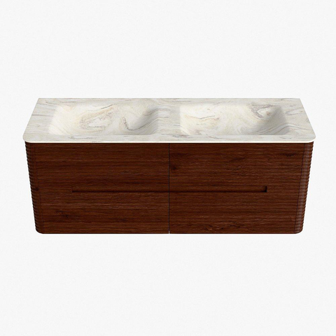 Mondiaz CIRO-DLUX Ensemble de meubles de salle de bains - 130x45x50cm - Plan-vasque en solid surface Ostra - 2 vasques Double - 2 trous de robinet - 4 tiroirs - Ruby