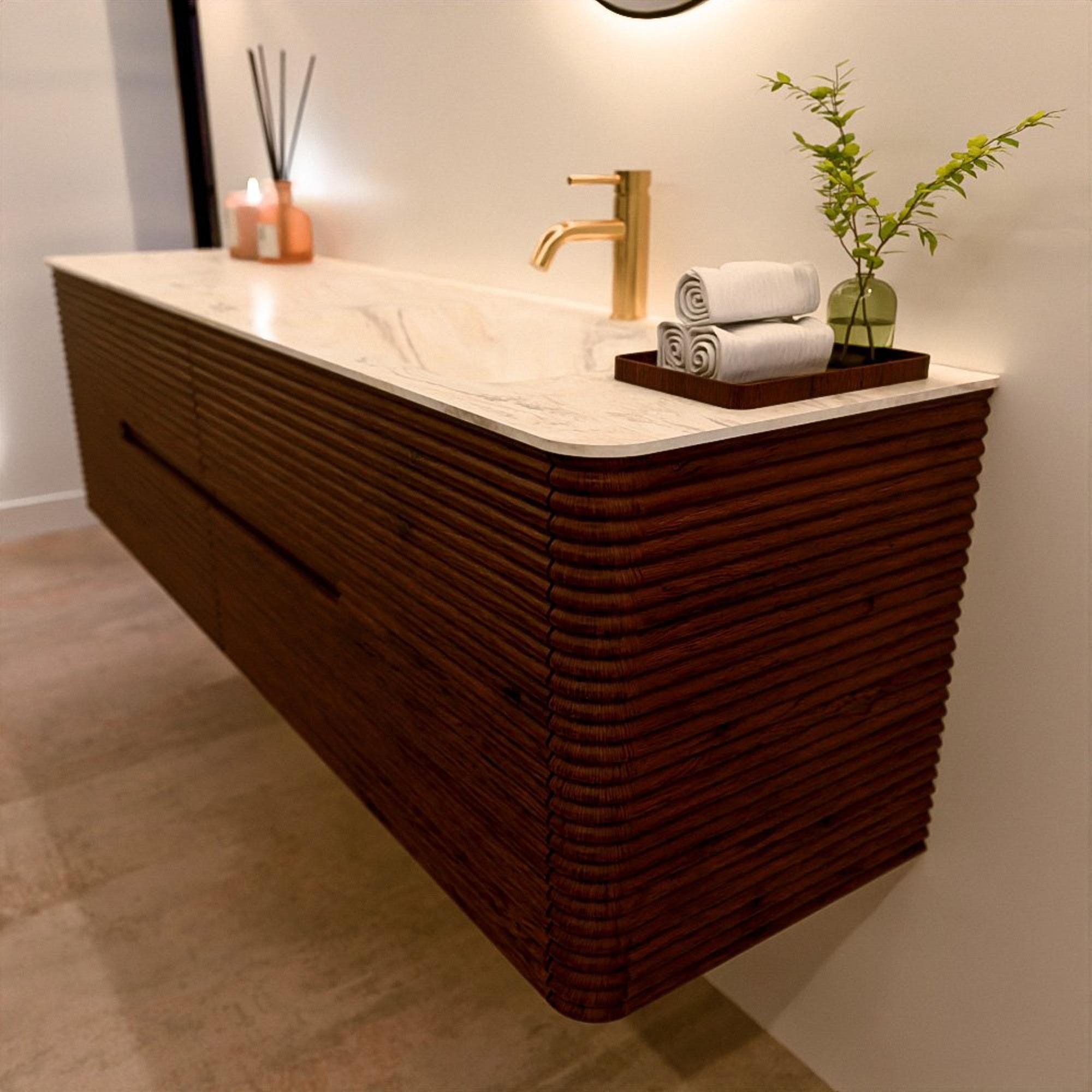 Le meuble de salle de bain CIRO-DLUX a été développé pour ceux qui choisissent un design moderne, des matériaux naturels et une fonctionnalité de haute qualité. Avec des dimensions allant de 70 cm à 190 cm, la gamme CIRO-DLUX s’intègre facilement aussi bien dans les salles de bain compactes que dans les grands espaces de design. Chaque meuble est une combinaison équilibrée d’esthétique, de savoir-faire et de qualité durable.