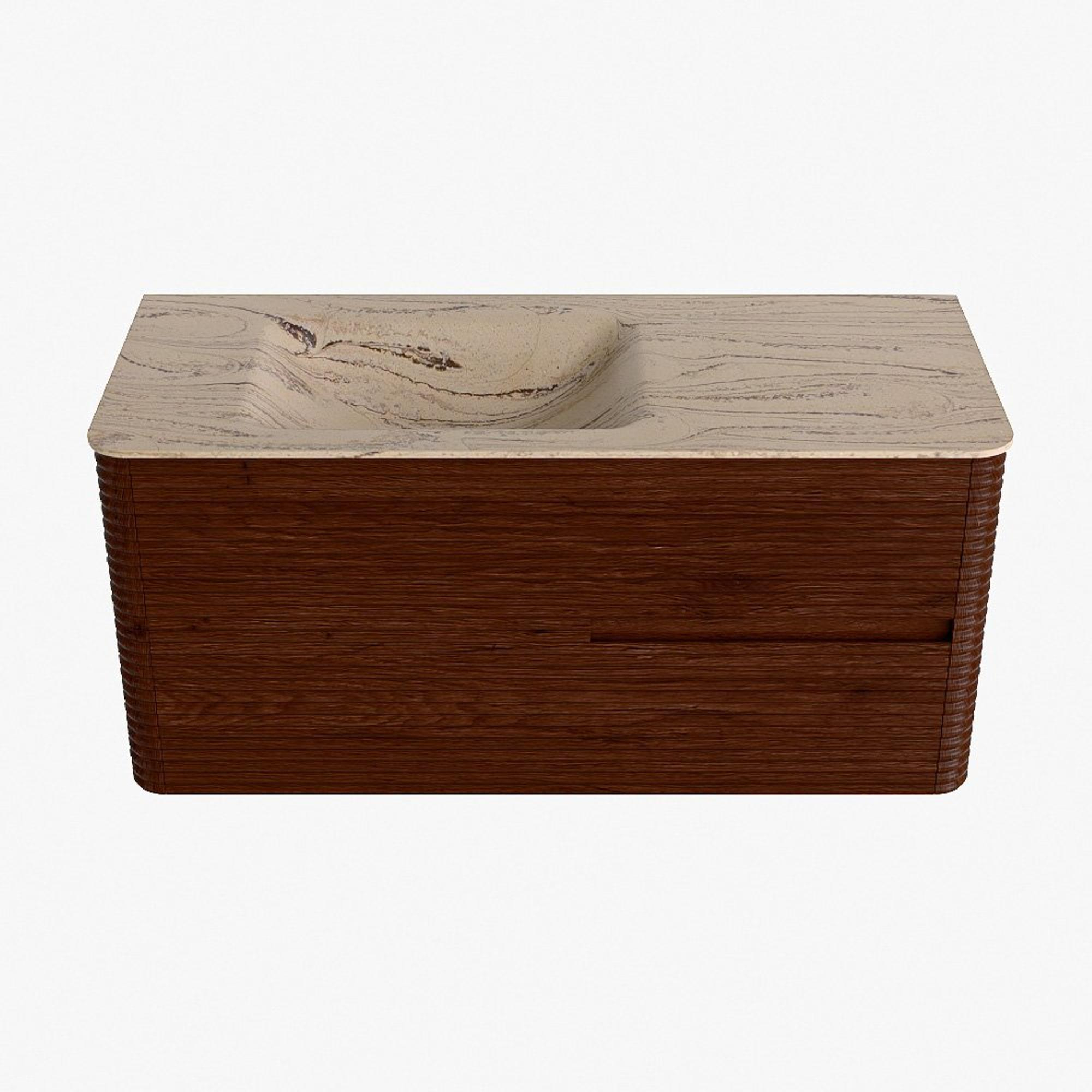 Mondiaz CIRO-DLUX Meuble de salle de bains - 110x45x50cm - Lavabo solid surface Arena - 1 vasque à gauche - 1 trou de robinet - 2 tiroirs - Ruby