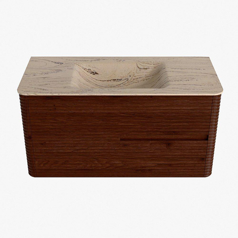 Mondiaz CIRO-DLUX Ensemble de meubles de salle de bains - 100x45x50cm - Vasque solid surface Arena - 1 bassin au milieu - 1 trou de robinet - 2 tiroirs - Ruby