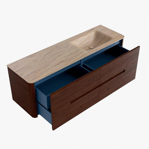 Mondiaz CIRO-DLUX Ensemble de meuble de salle de bains - 150x45x50cm - Plan vasque Solid surface Saba - 1 vasque à droite - 1 trou de robinet - 4 tiroirs - Ruby