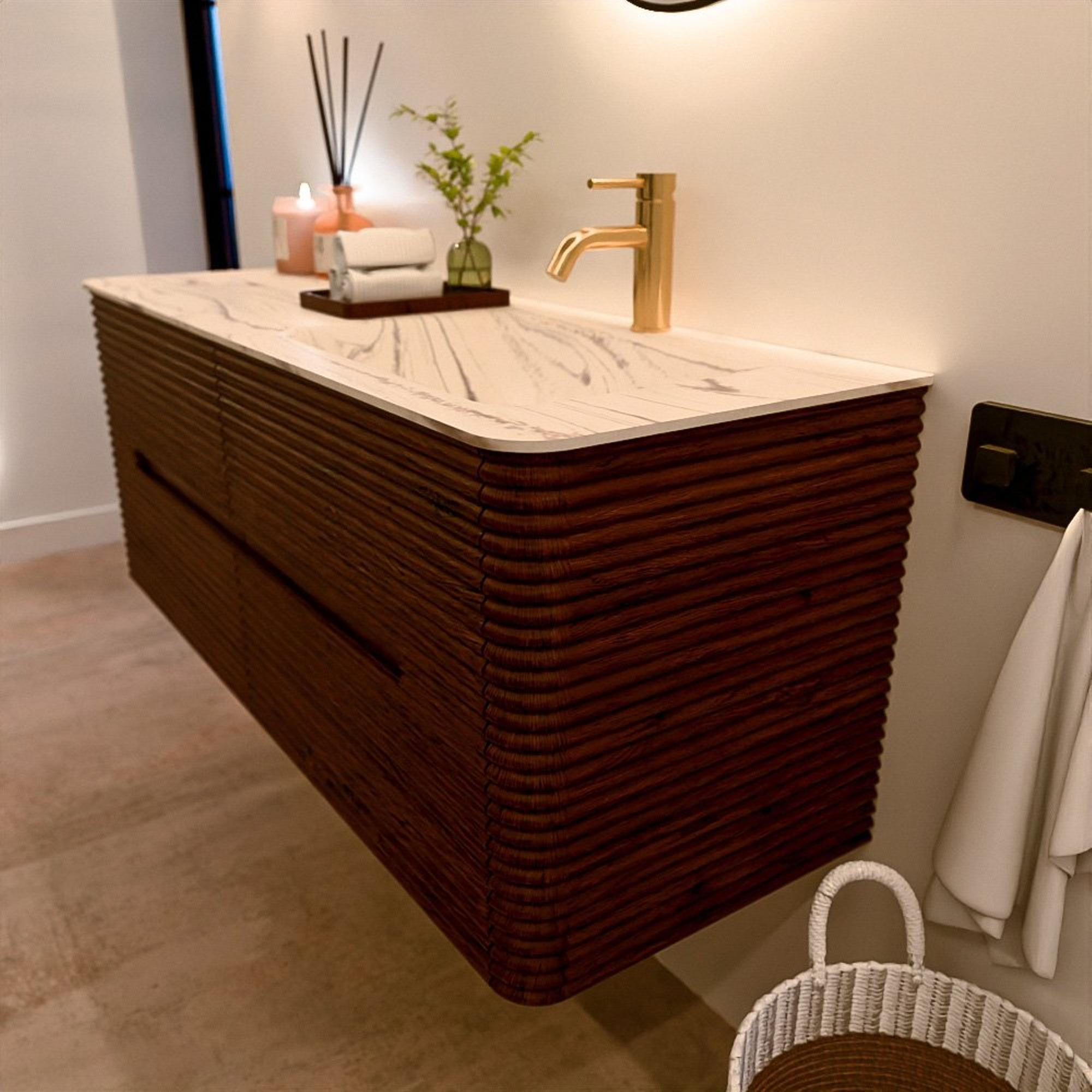 Le meuble de salle de bain CIRO-DLUX a été développé pour ceux qui choisissent un design moderne, des matériaux naturels et une fonctionnalité de haute qualité. Avec des dimensions allant de 70 cm à 190 cm, la gamme CIRO-DLUX s’intègre facilement aussi bien dans les salles de bain compactes que dans les grands espaces de design. Chaque meuble est une combinaison équilibrée d’esthétique, de savoir-faire et de qualité durable.