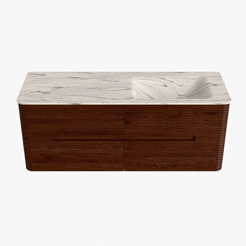 Mondiaz CIRO-DLUX Meuble de salle de bains - 130x45x50cm - Vasque solid surface Nata - 1 lavabo à droite - 1 trou de robinetterie - 4 tiroirs - Ruby