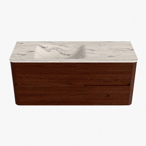 Mondiaz CIRO-DLUX ensemble de meubles de salle de bains - 120x45x50cm - plan-vasque en solid surface Nata - 1 lavabo à gauche - 1 trou de robinet - 2 tiroirs - Ruby