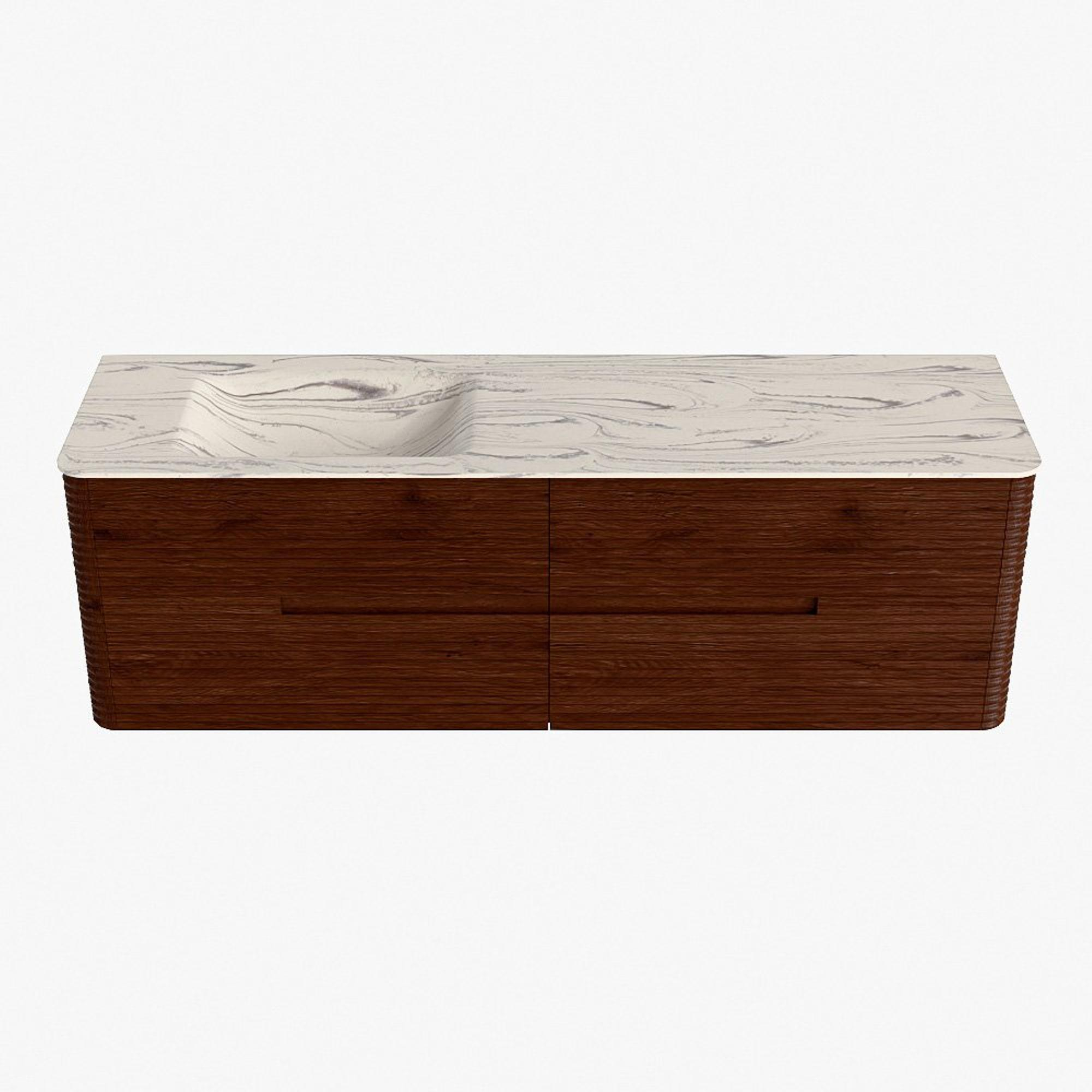 Mondiaz CIRO-DLUX Ensemble de meubles de salle de bains - 160x45x50cm - lavabo en solid surface Nata - 1 vasque à gauche - sans trous de robinet - 4 tiroirs - Ruby