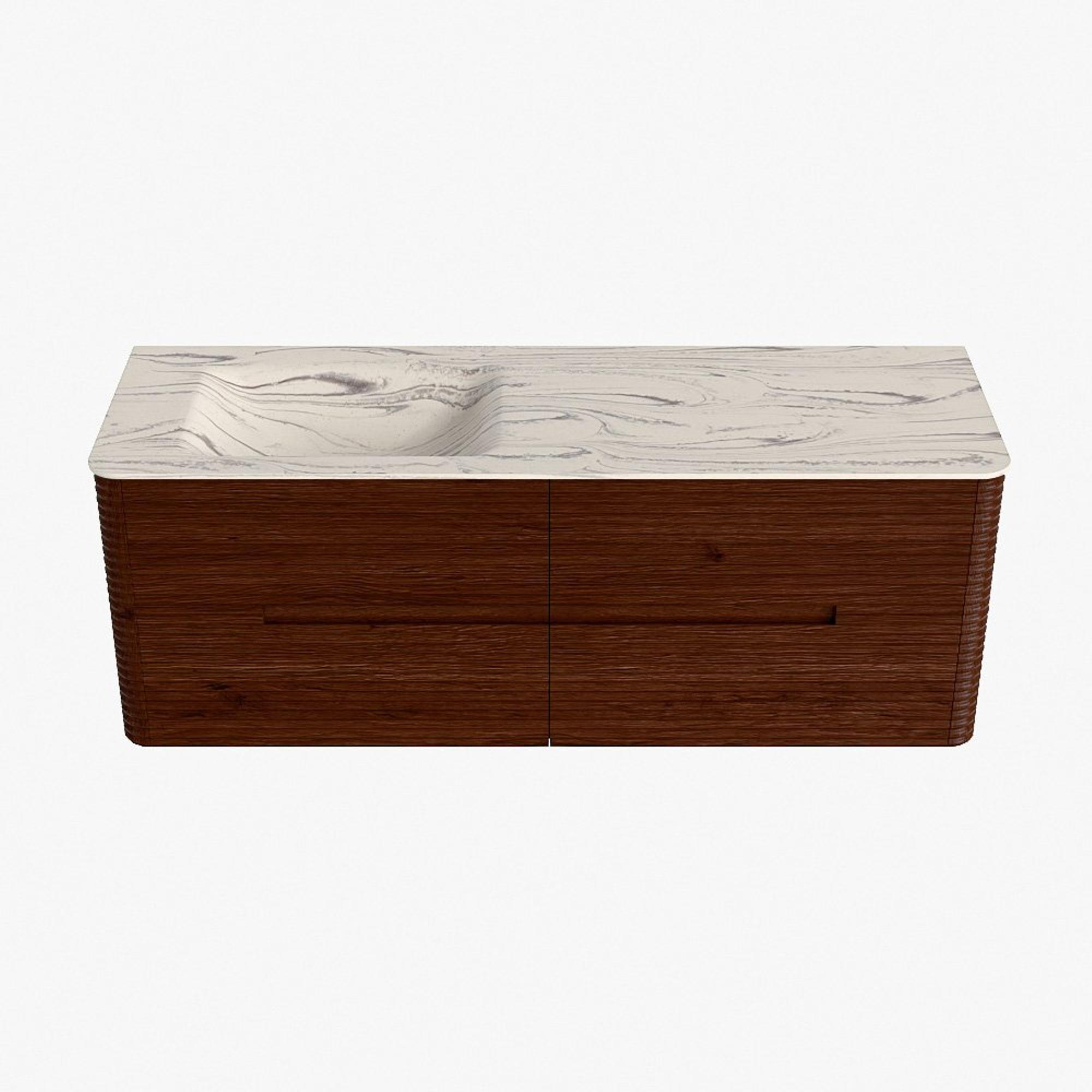 Mondiaz CIRO-DLUX Ensemble de meubles de salle de bains - 140x45x50cm - Plan vasque solid surface Nata - 1 vasque à gauche - sans trous de robinetterie - 4 tiroirs - Ruby