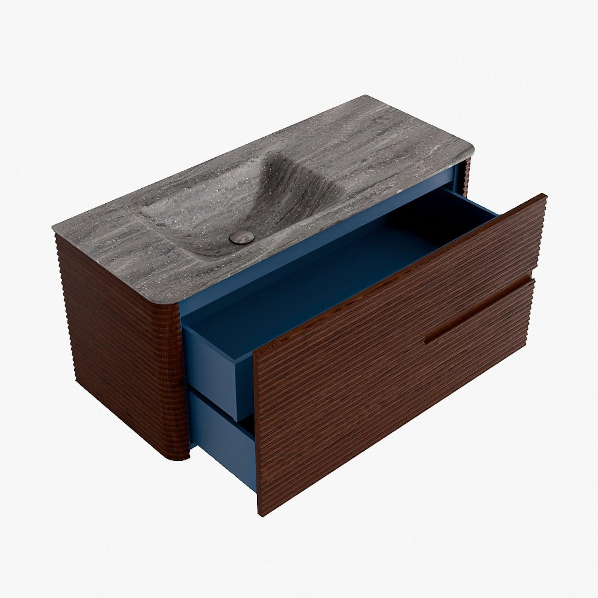 La praticité est un élément essentiel de la gamme CIRO. Le meuble dispose d’un grand tiroir avec un tiroir intérieur supplémentaire, idéal pour ranger de manière organisée tous les articles quotidiens de la salle de bain. Grâce à la poignée intégrée et au mécanisme de fermeture douce, la façade reste sobre, élégante et épurée.