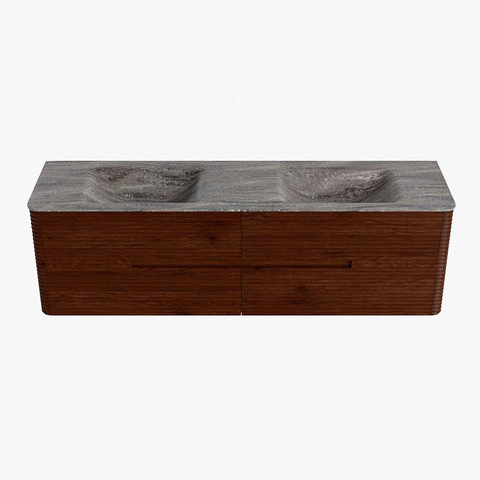 Mondiaz CIRO-DLUX Meuble de salle de bains ensemble - 170x45x50cm - Plan vasque Solid surface Oza - 2 vasques Double - sans trous pour robinets - 4 tiroirs - Ruby