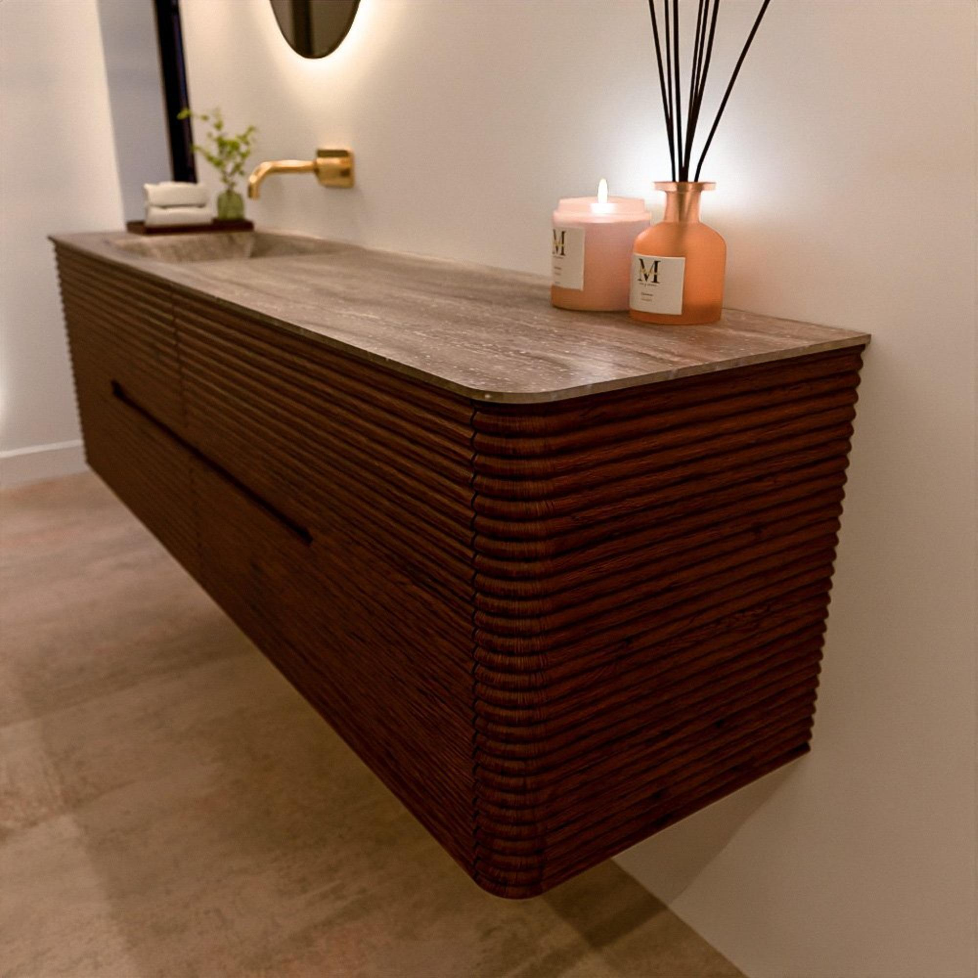 Le meuble de salle de bain CIRO-DLUX a été développé pour ceux qui choisissent un design moderne, des matériaux naturels et une fonctionnalité de haute qualité. Avec des dimensions allant de 70 cm à 190 cm, la gamme CIRO-DLUX s’intègre facilement aussi bien dans les salles de bain compactes que dans les grands espaces de design. Chaque meuble est une combinaison équilibrée d’esthétique, de savoir-faire et de qualité durable.