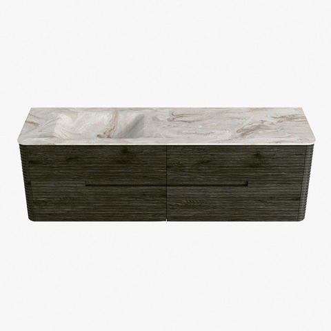 Mondiaz CIRO-DLUX Meuble de salle de bains - 160x45x50cm - Plan vasque solid surface Frappe - 1 vasque à gauche - 1 trou de robinet - 4 tiroirs - Shadow