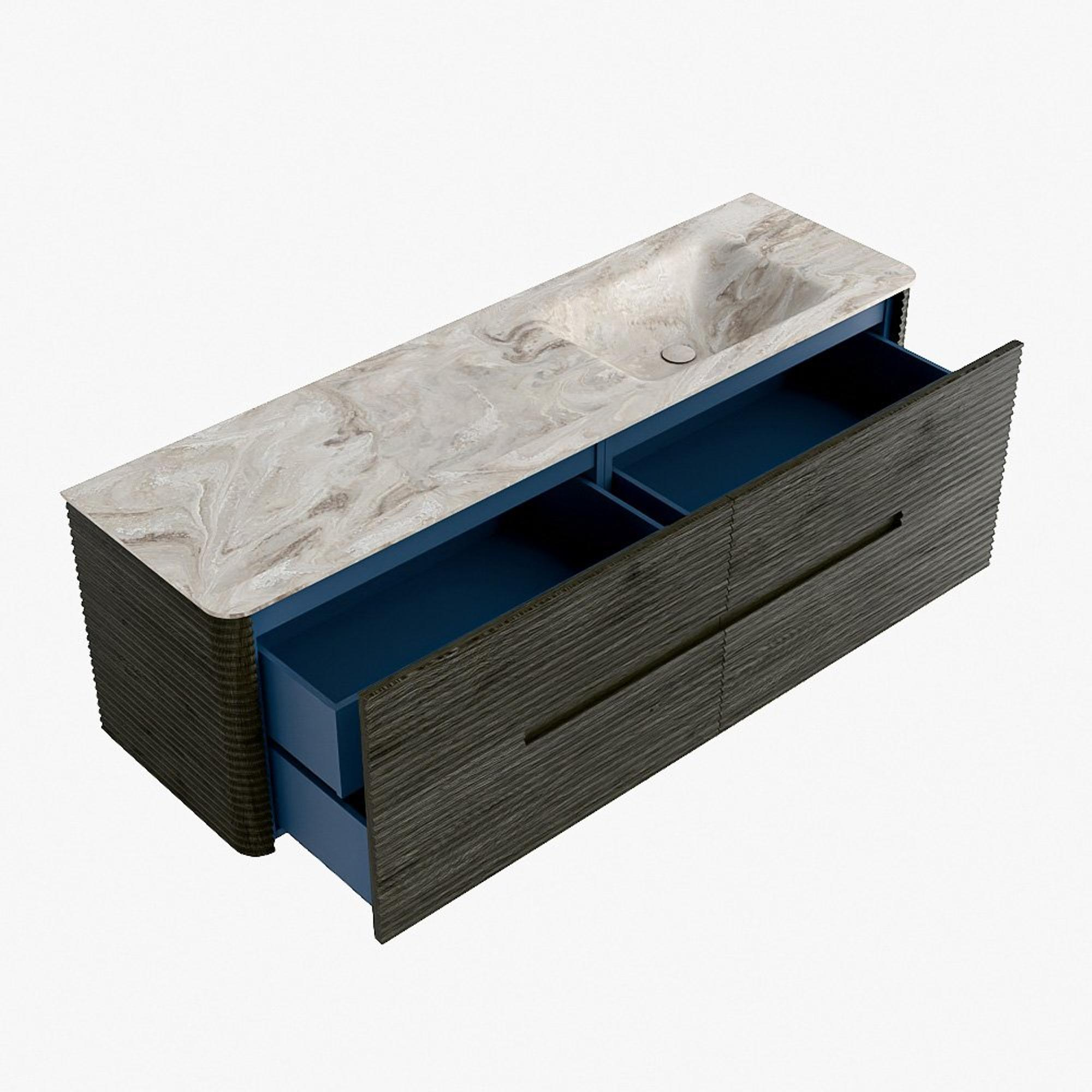 La praticité est un élément essentiel de la gamme CIRO. Le meuble dispose d’un grand tiroir avec un tiroir intérieur supplémentaire, idéal pour ranger de manière organisée tous les articles quotidiens de la salle de bain. Grâce à la poignée intégrée et au mécanisme de fermeture douce, la façade reste sobre, élégante et épurée.