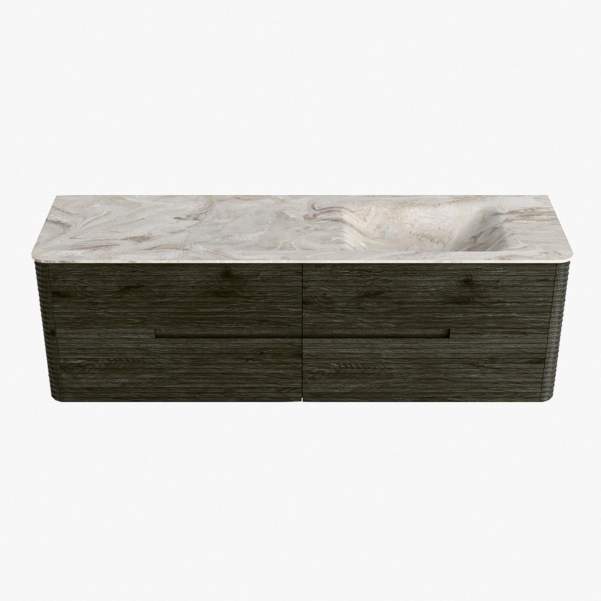 Mondiaz CIRO-DLUX Ensemble de meubles de salle de bains - 160x45x50cm - vasque solid surface Frappe - 1 lavabo à droite - sans trous de robinet - 4 tiroirs - Shadow