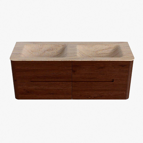 Mondiaz CIRO-DLUX Meuble de salle de bains - 130x45x50cm - plan vasque solid surface Saba - 2 vasques Double - sans trous de robinet - 4 tiroirs - Ruby