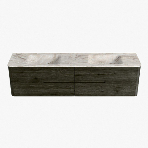 Mondiaz CIRO-DLUX Meuble de salle de bains - 190x45x50cm - Plan vasque solid surface Frappe - 2 vasques double - sans trous de robinet - 4 tiroirs - Shadow