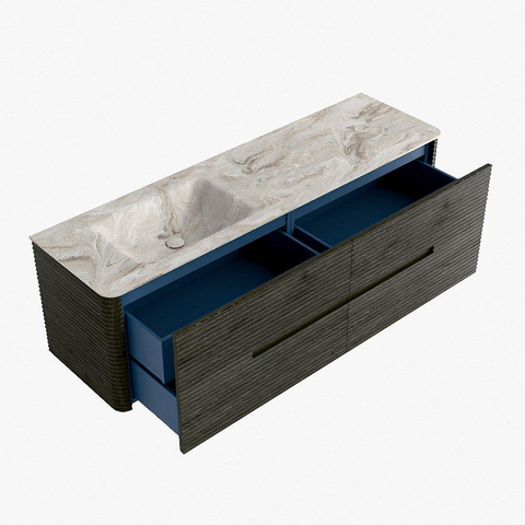 Mondiaz CIRO-DLUX Ensemble de meubles de salle de bains - 160x45x50cm - lavabo en solid surface Frappe - 1 vasque à gauche - sans trous de robinetterie - 4 tiroirs - Shadow