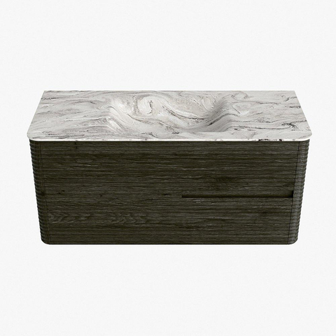 Mondiaz CIRO-DLUX Ensemble de meubles de salle de bains - 110x45x50cm - vasque solid surface Glace - 1 lavabo au milieu - sans trous de robinet - 2 tiroirs - Shadow