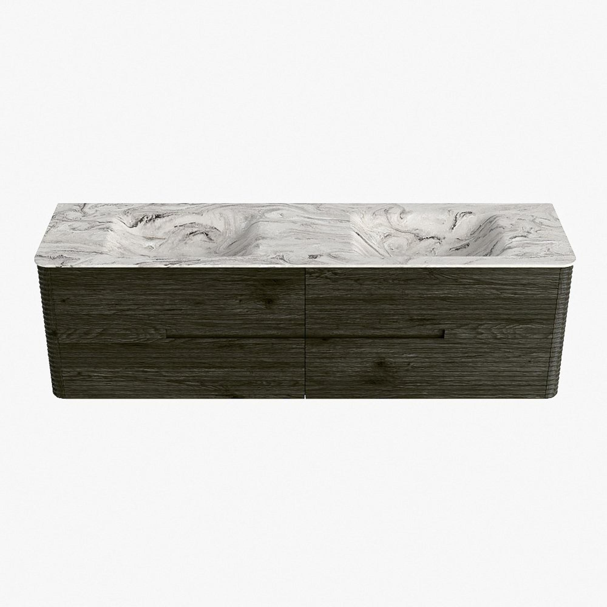 Mondiaz CIRO-DLUX Ensemble de meubles de salle de bains - 170x45x50cm - lavabo solid surface Glace - 2 vasques double - sans trous de robinet - 4 tiroirs - Shadow