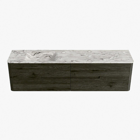 Mondiaz CIRO-DLUX Ensemble de meubles de salle de bains - 190x45x50cm - plan-vasque Solid surface Glace - 1 lavabo à gauche - sans trous de robinet - 4 tiroirs - Shadow