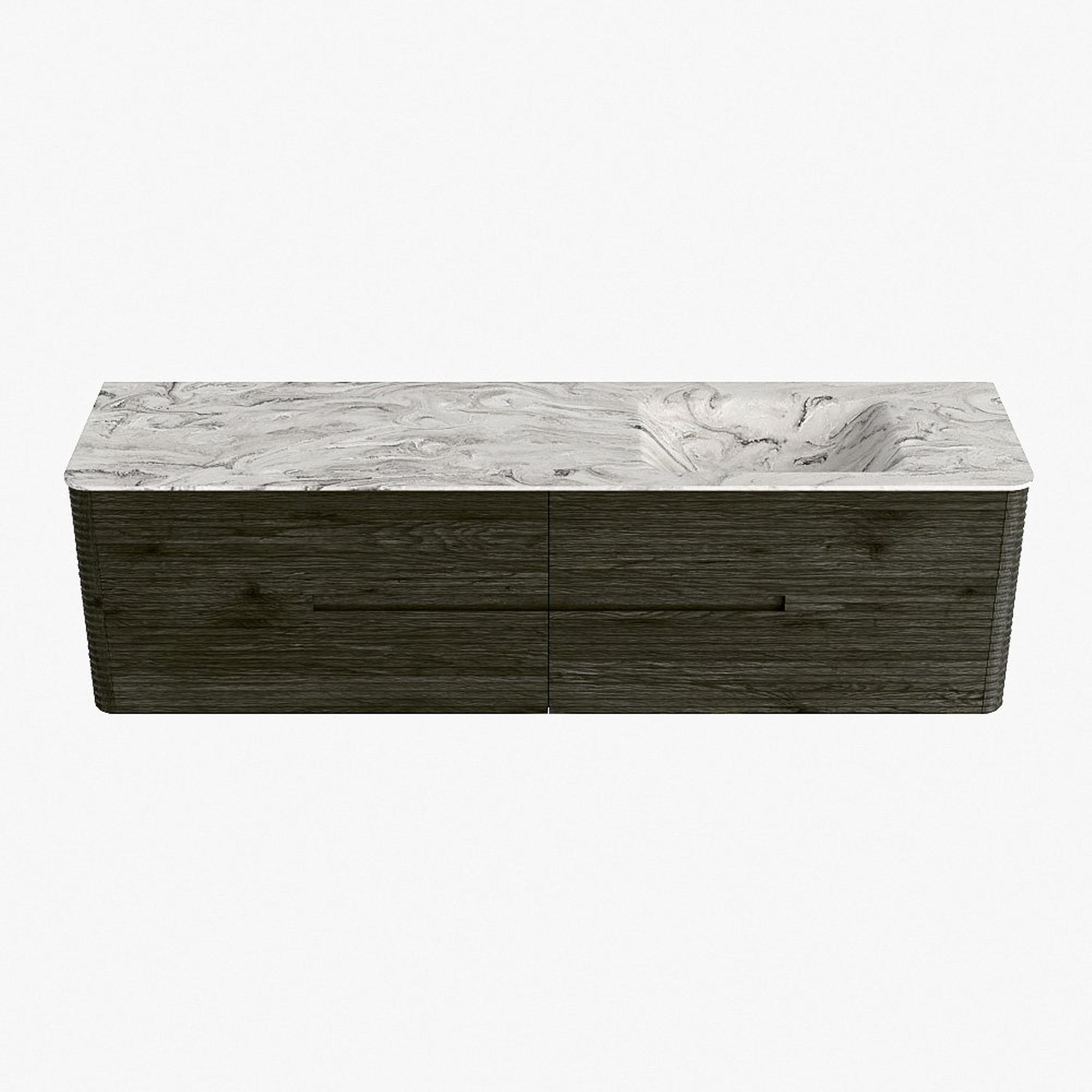 Mondiaz CIRO-DLUX Meuble de salle de bains - 180x45x50cm - Plan vasque solid surface Glace - 1 lavabo à droite - sans trous de robinet - 4 tiroirs - Shadow