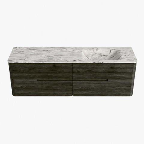 Mondiaz CIRO-DLUX Meuble de salle de bains - 160x45x50cm - plan-vasque solid surface Glace - 1 vasque à droite - sans trous de robinetterie - 4 tiroirs - Shadow